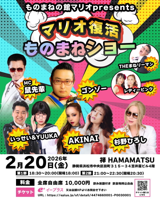 2月20日(金)にマリオ復活ものまねショーを開催いたします!